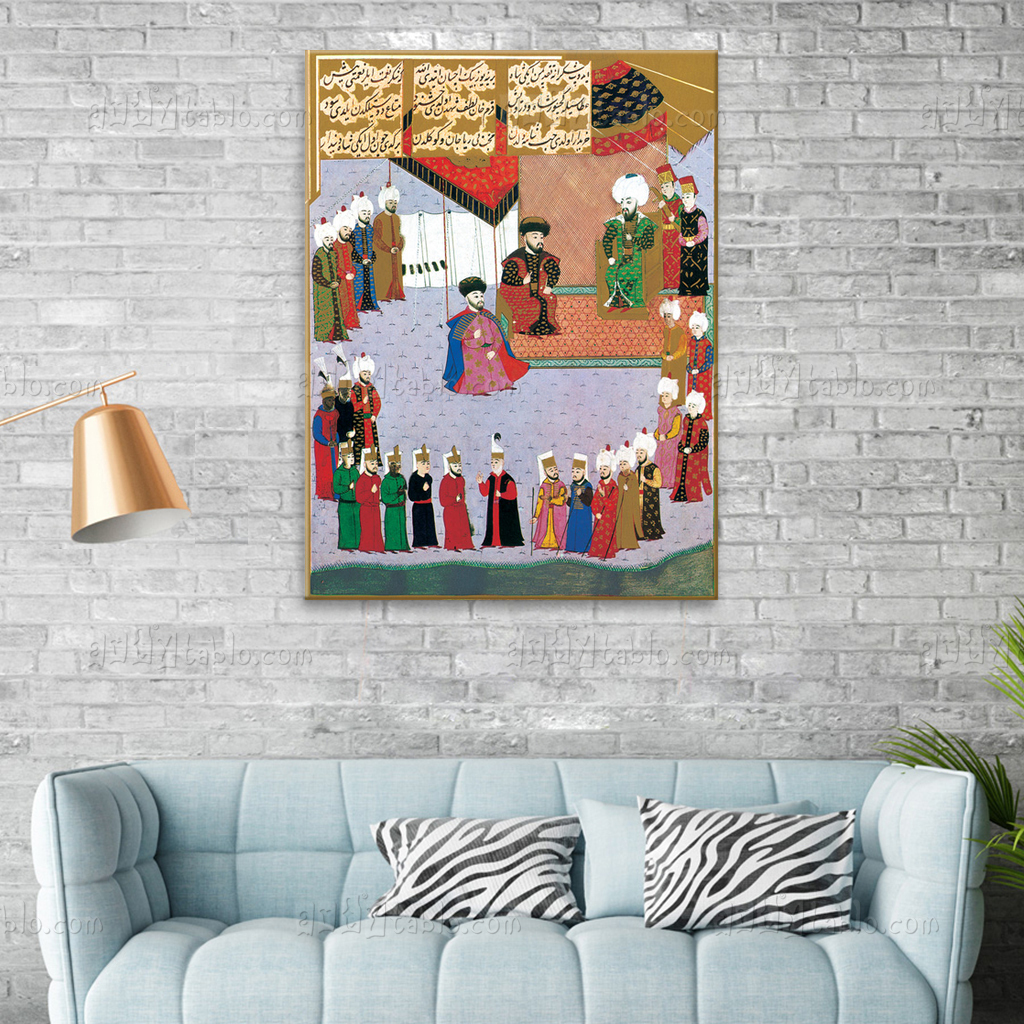 Mengli Giray Han Sefere Katılmak Üzere II. Beyazid Huzurunda Tablo, Mehmed BEY kategorisinde öne çıkan ve dekorasyonunuza değer katan özel bir tasarımdır. Sanatsal detayları ve yüksek kaliteli üretimi sayesinde evinize, ofisinize veya sevdiklerinize hediye olarak tercih edilebilecek zarif bir seçenektir. Arty Tablo’nun özenle hazırladığı bu tablo, bulunduğu mekâna estetik bir dokunuş kazandırır.